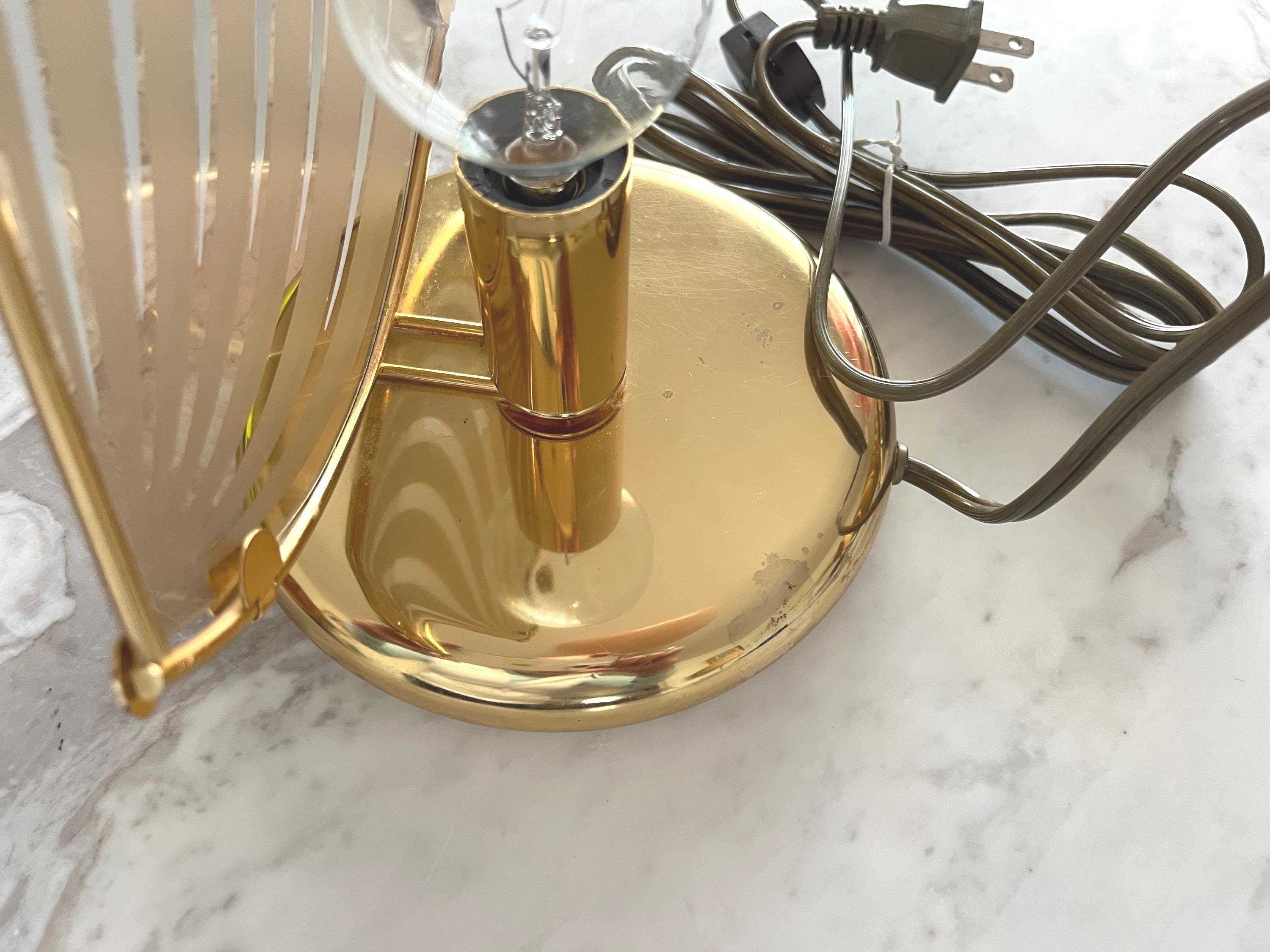 In great VINTAGE condition with tiny edge chips on glass shade and patina, discoloration to base.