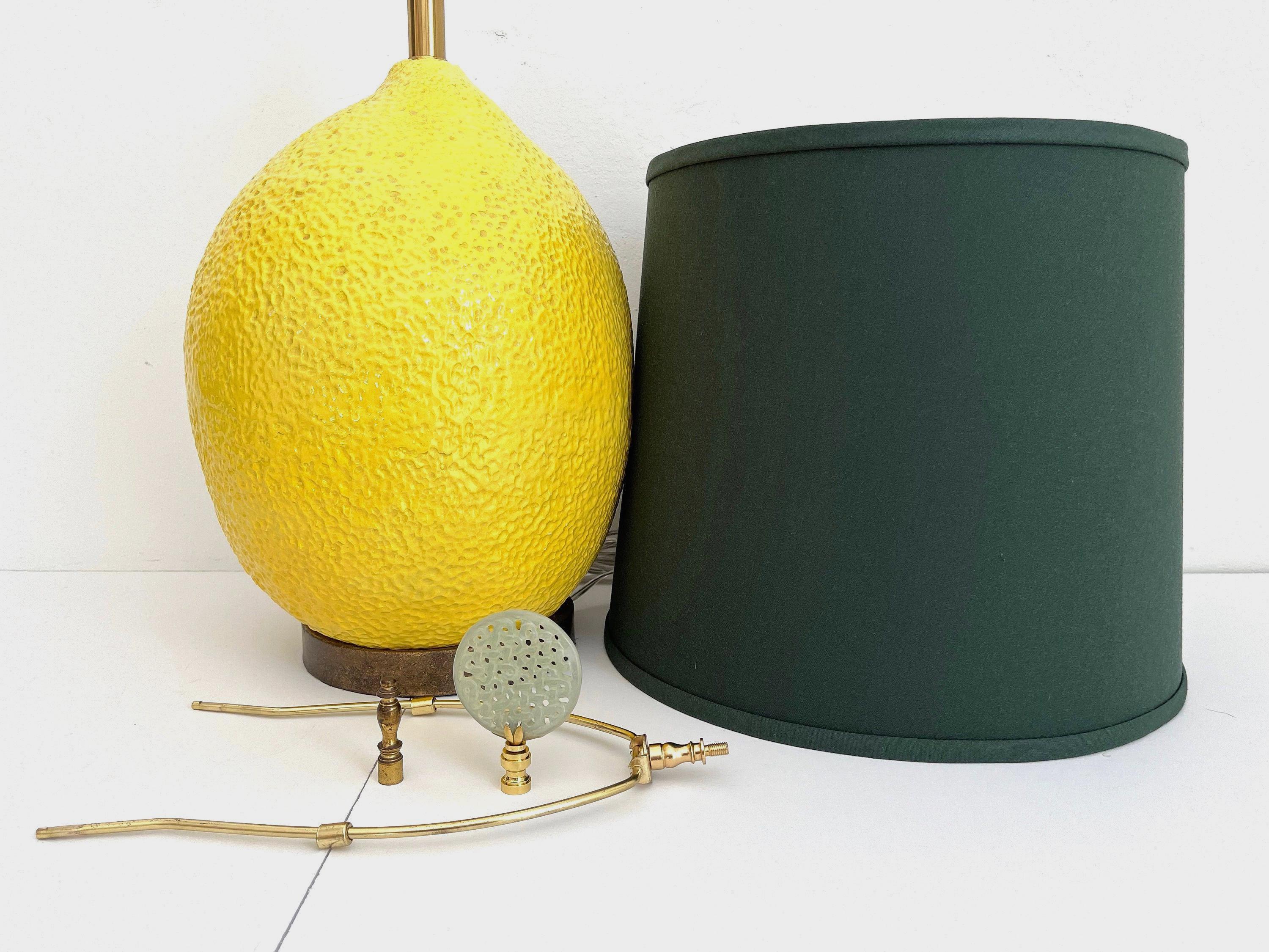 Huge happy mid century glazed ceramic lemon lamp by Paul Hanson in bright lemon yellow with hand textured finish and original label.