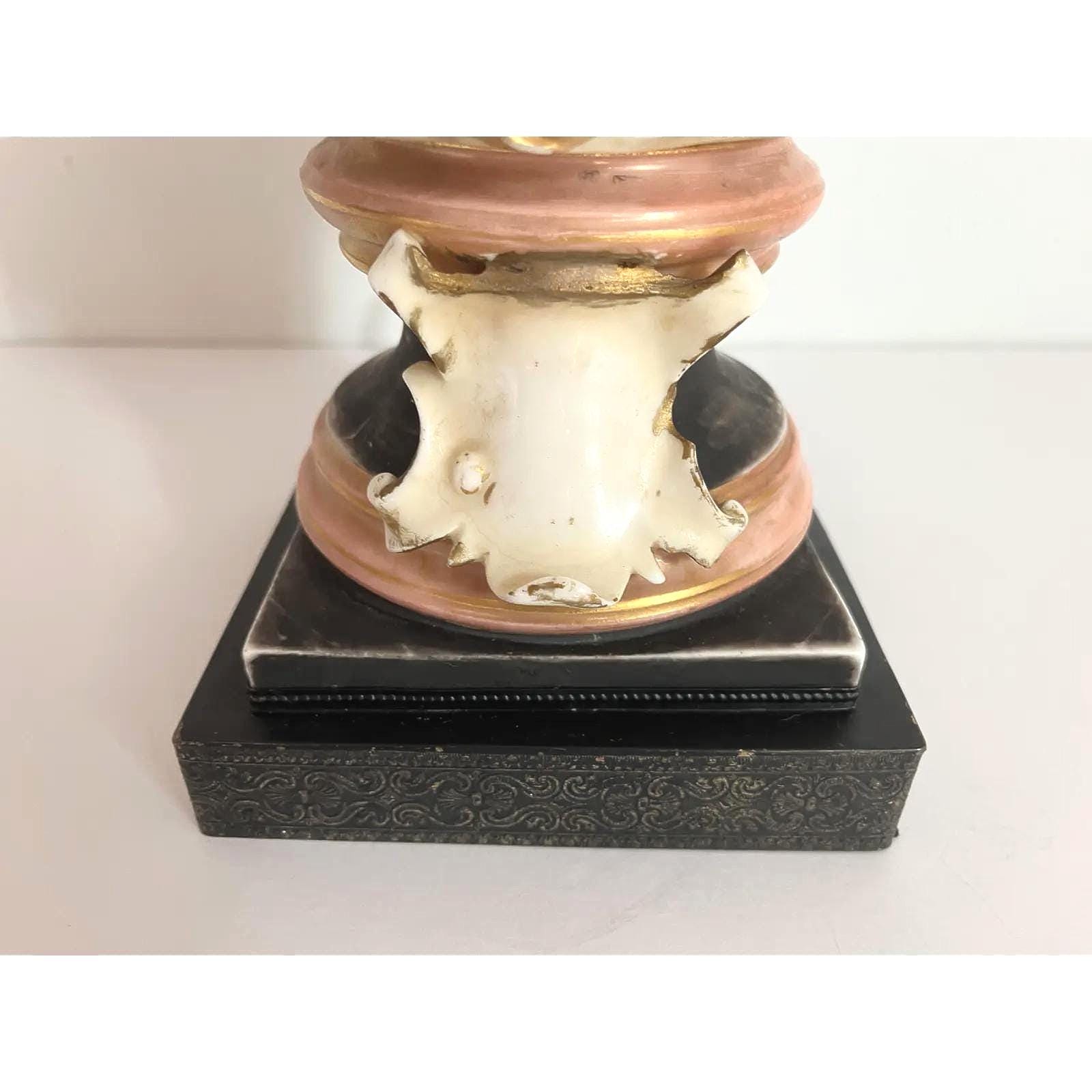 In great VINTAGE condition with uniform patina, light yellowing to the finish, and chip to the scroll on the right side front of bust.