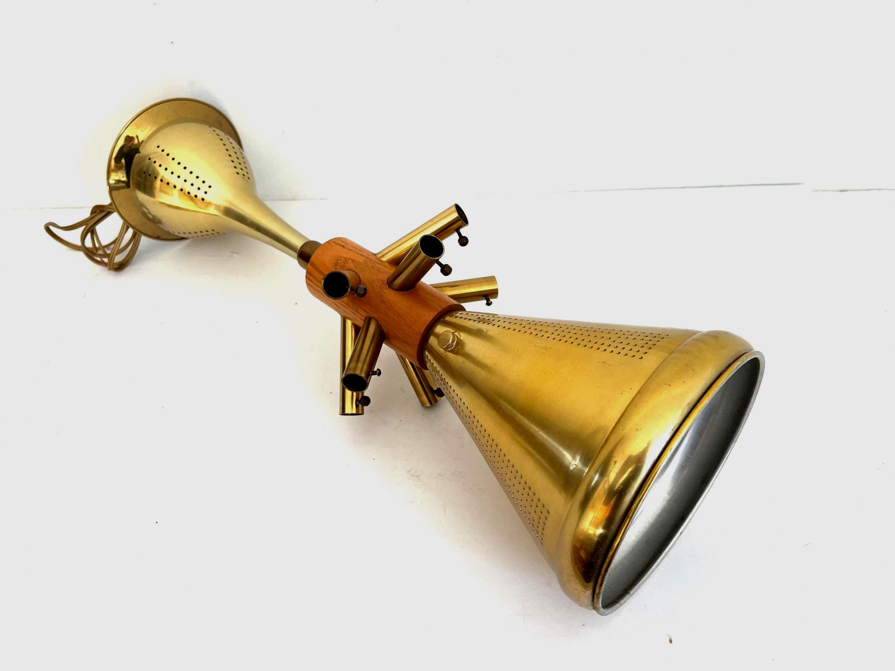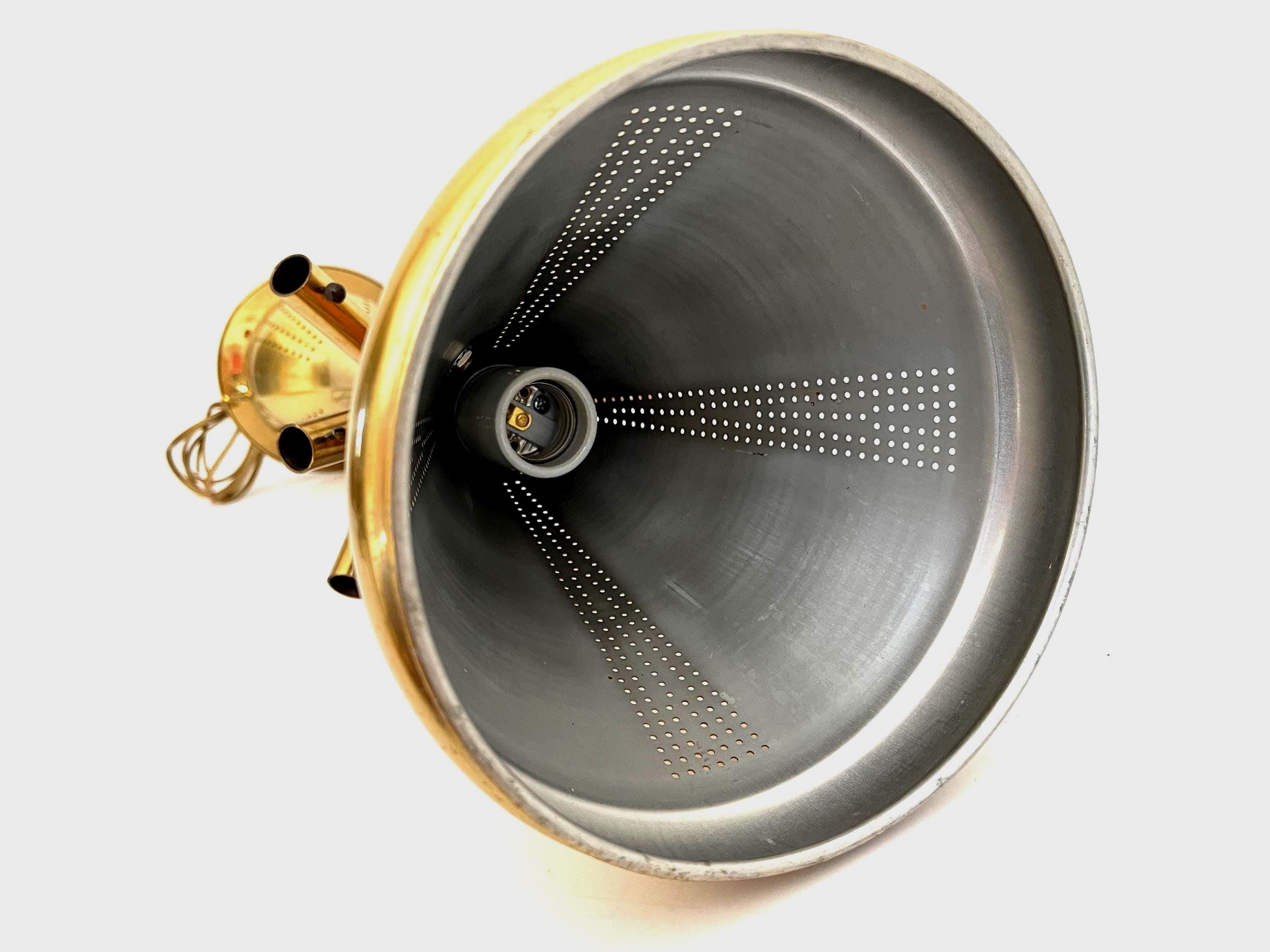 Professionally restored with new wiring and porcelain socket for standard bulb. Comes ready to install with 34"L adjustable chain from top of frame and raw brass ceiling canopy.