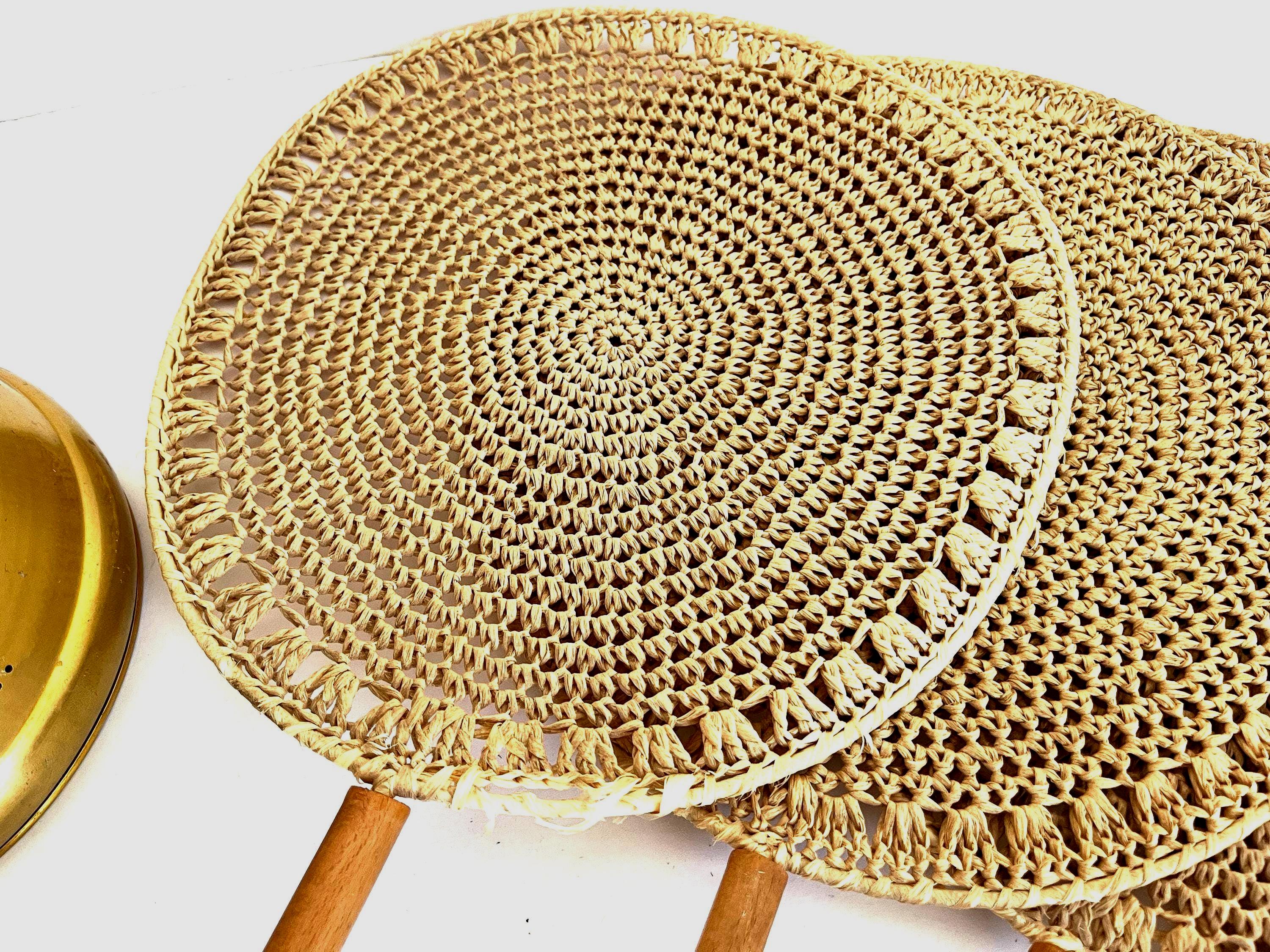 In amazing VINTAGE condition with patina, one palm leaf has some fraying at the top, and natural color, size variations to the wicker shades.