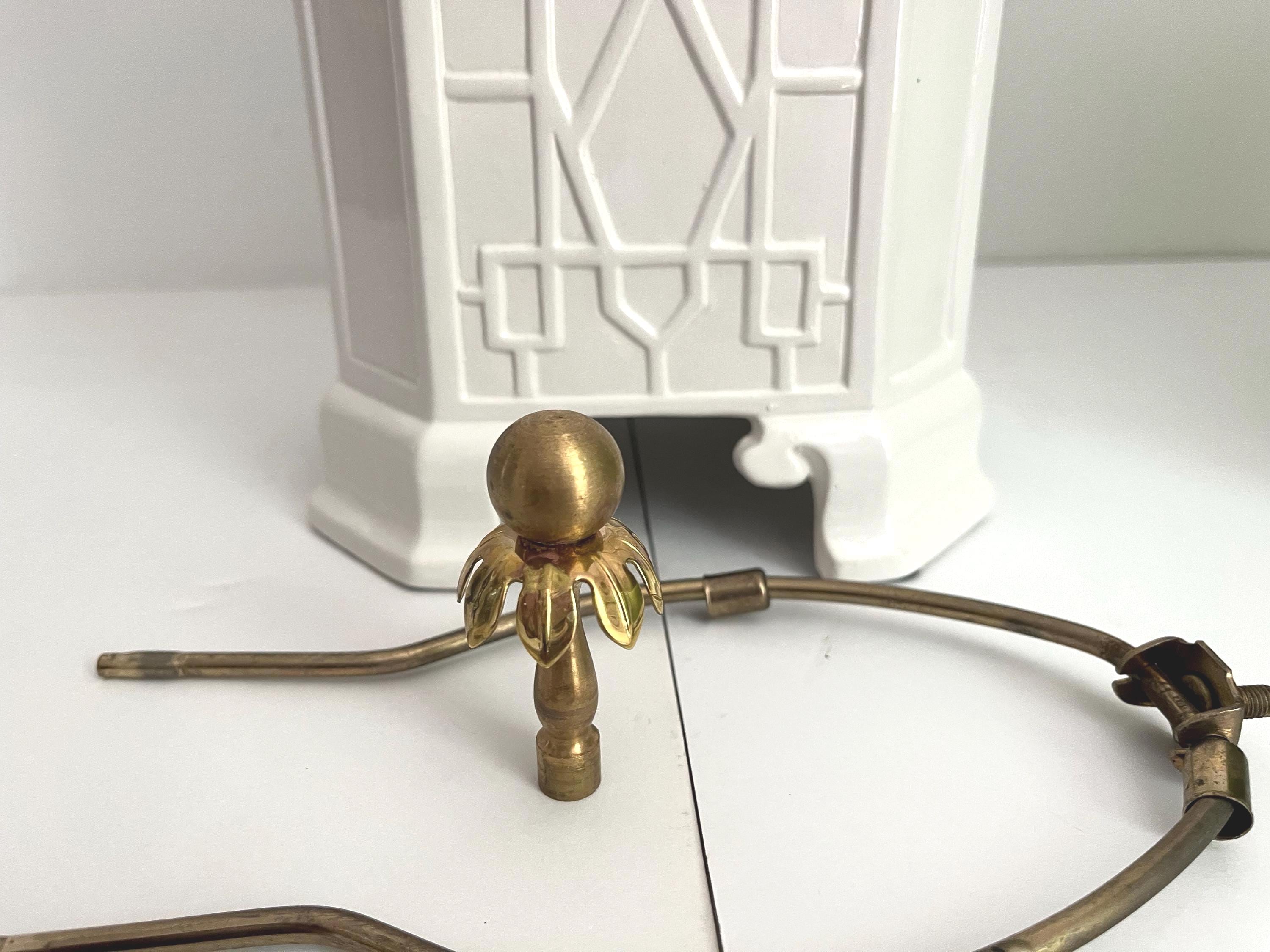Stunning tall pagoda lamp by Chapman of glazed white porcelain accented by a fluted top with raised fretwork panels and chic cutout Asian feet.
