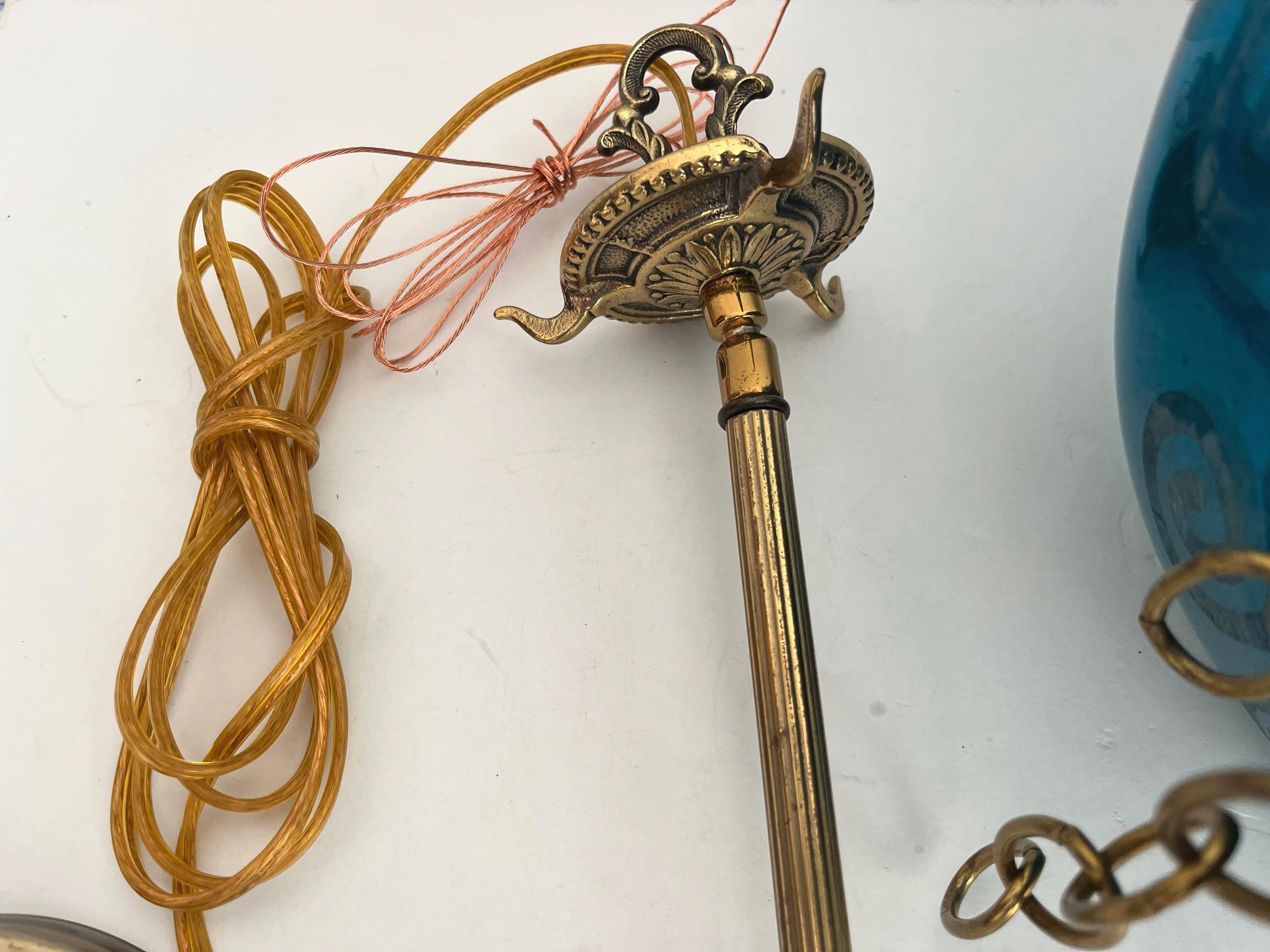 Professionally restored with new wiring, socket and cover for single standard bulb. Comes ready to install with 38"L additional, adjustable chain.