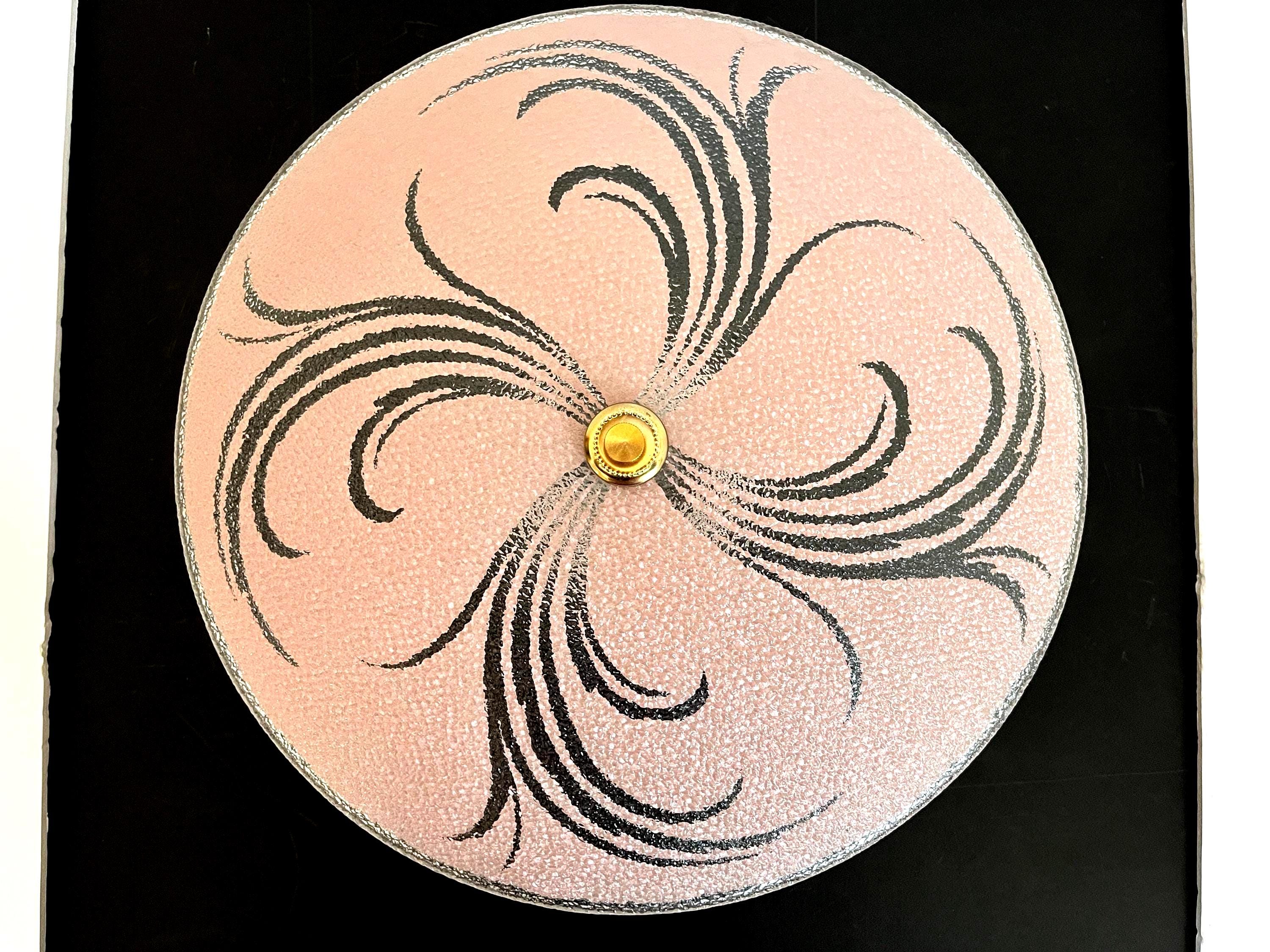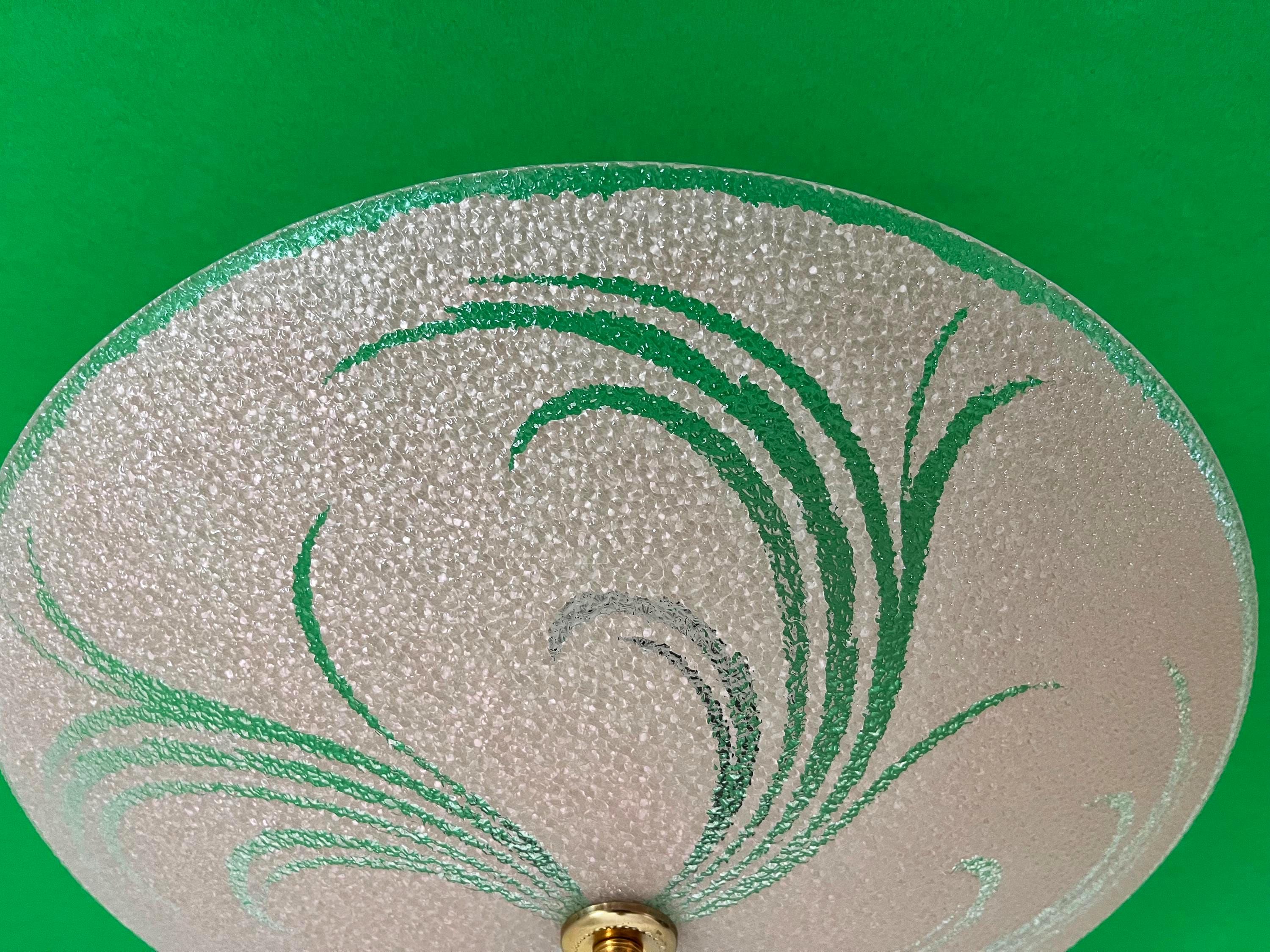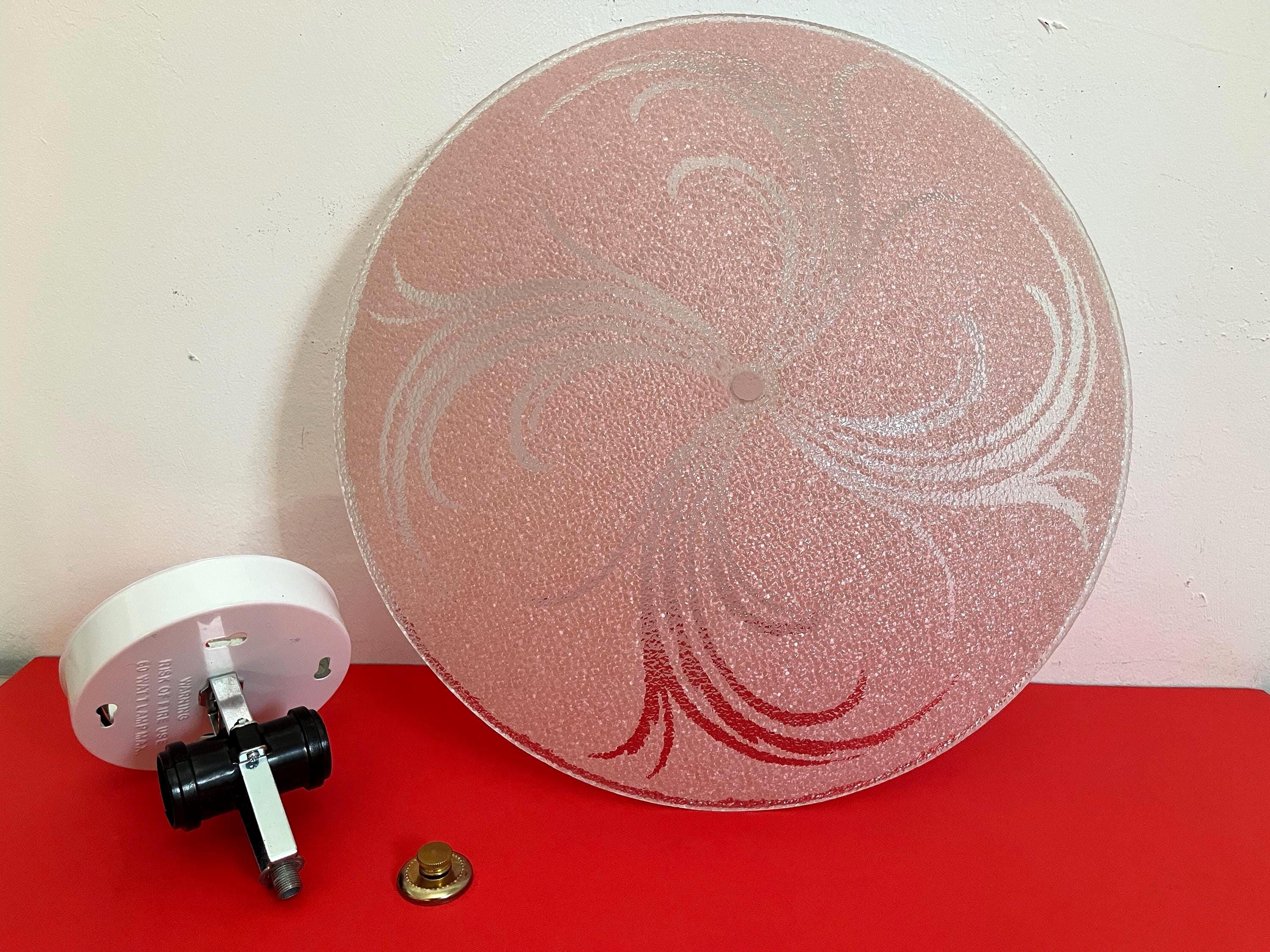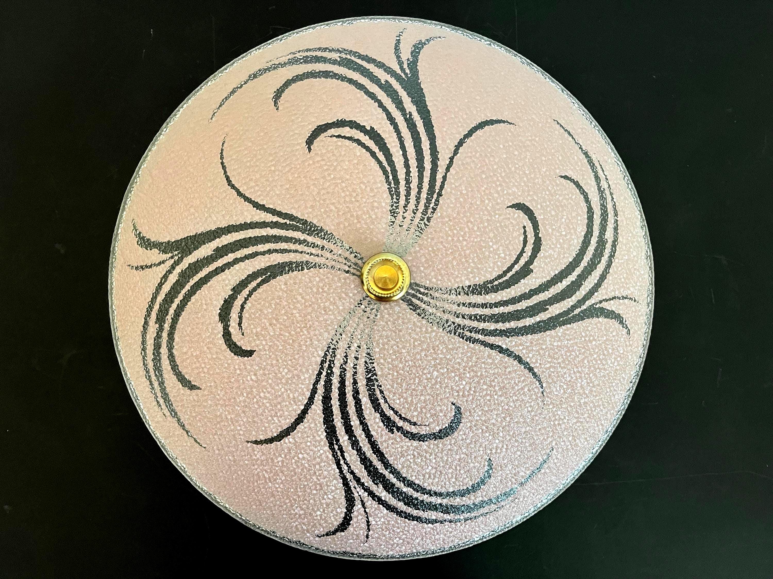 Sparkling 1950s Hollywood Regency style textured glass ceiling light in soft pink with radiant transparent leaf sprays and border.