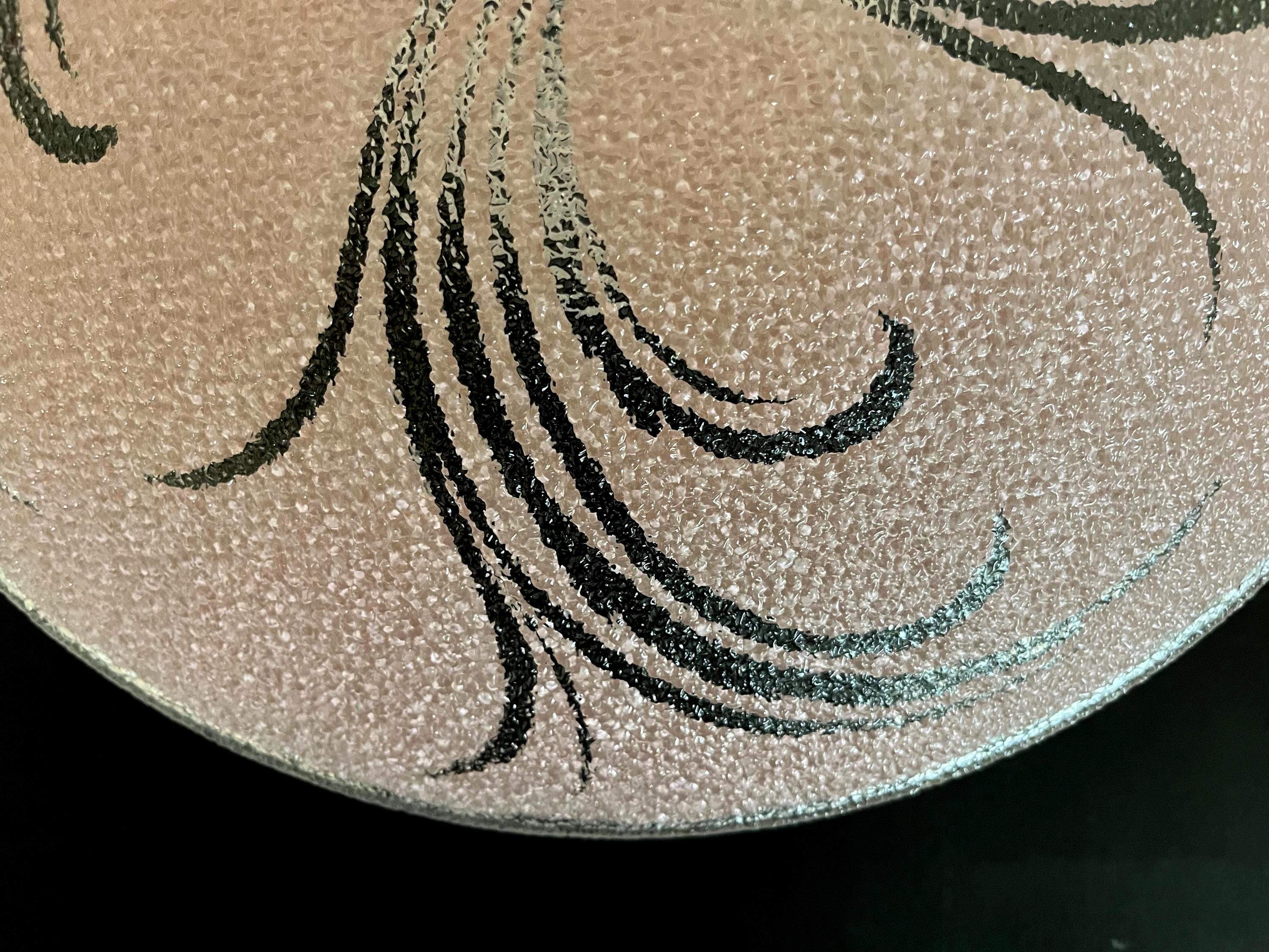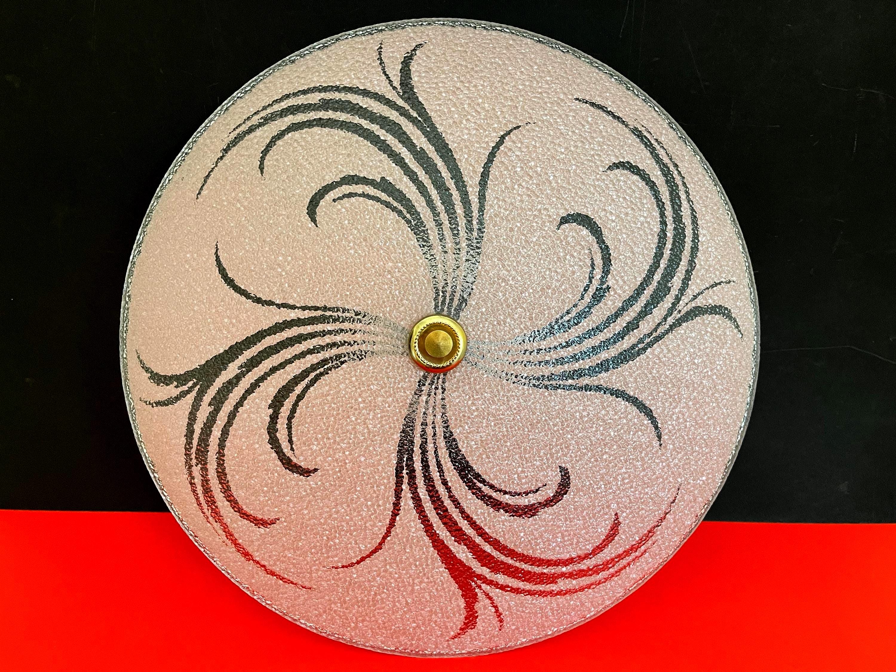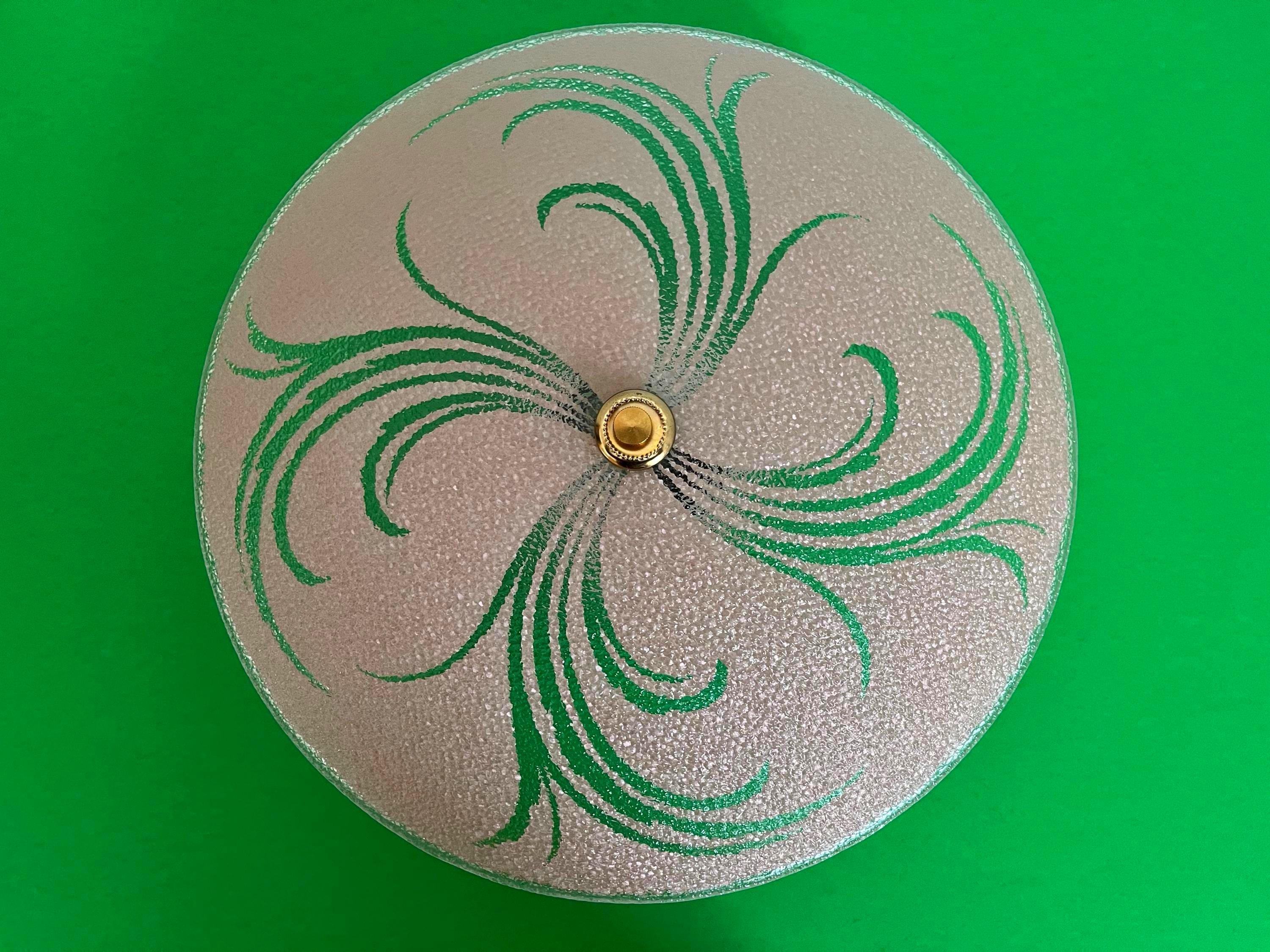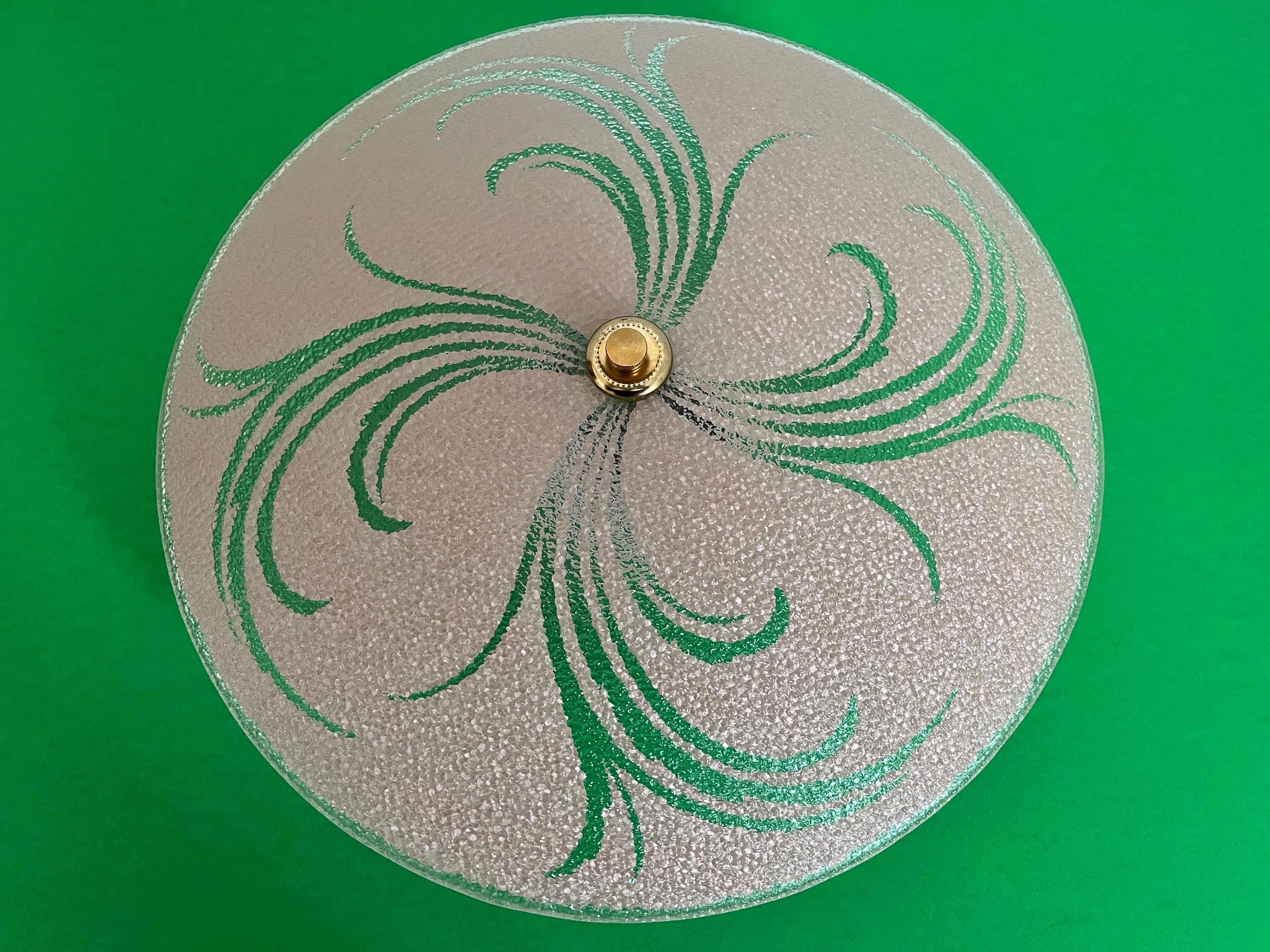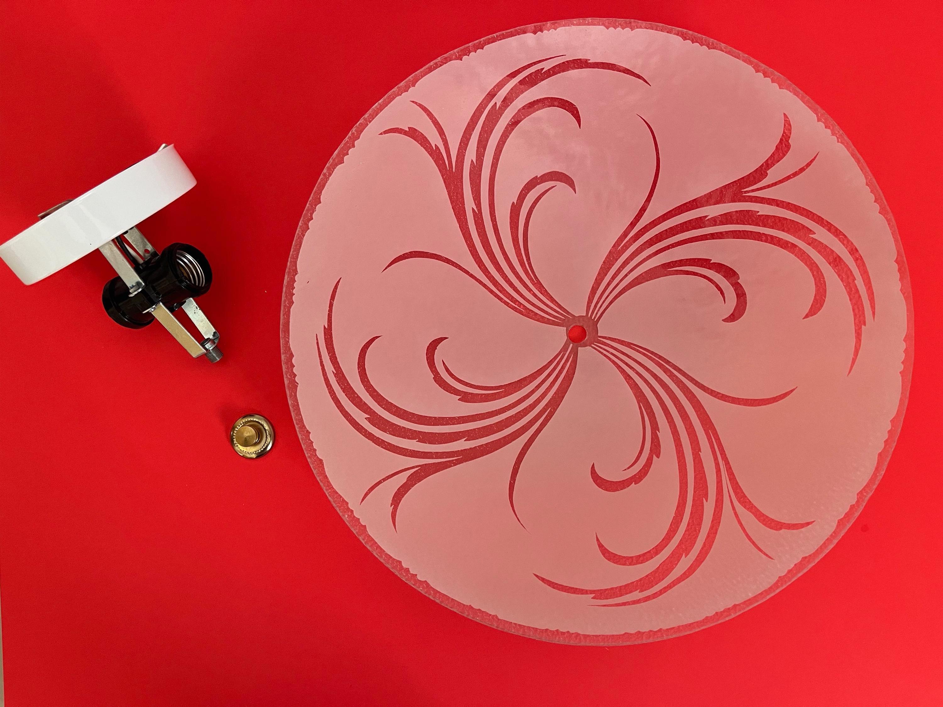 Sparkling 1950s Hollywood Regency style textured glass ceiling light in soft pink with radiant transparent leaf sprays and border.