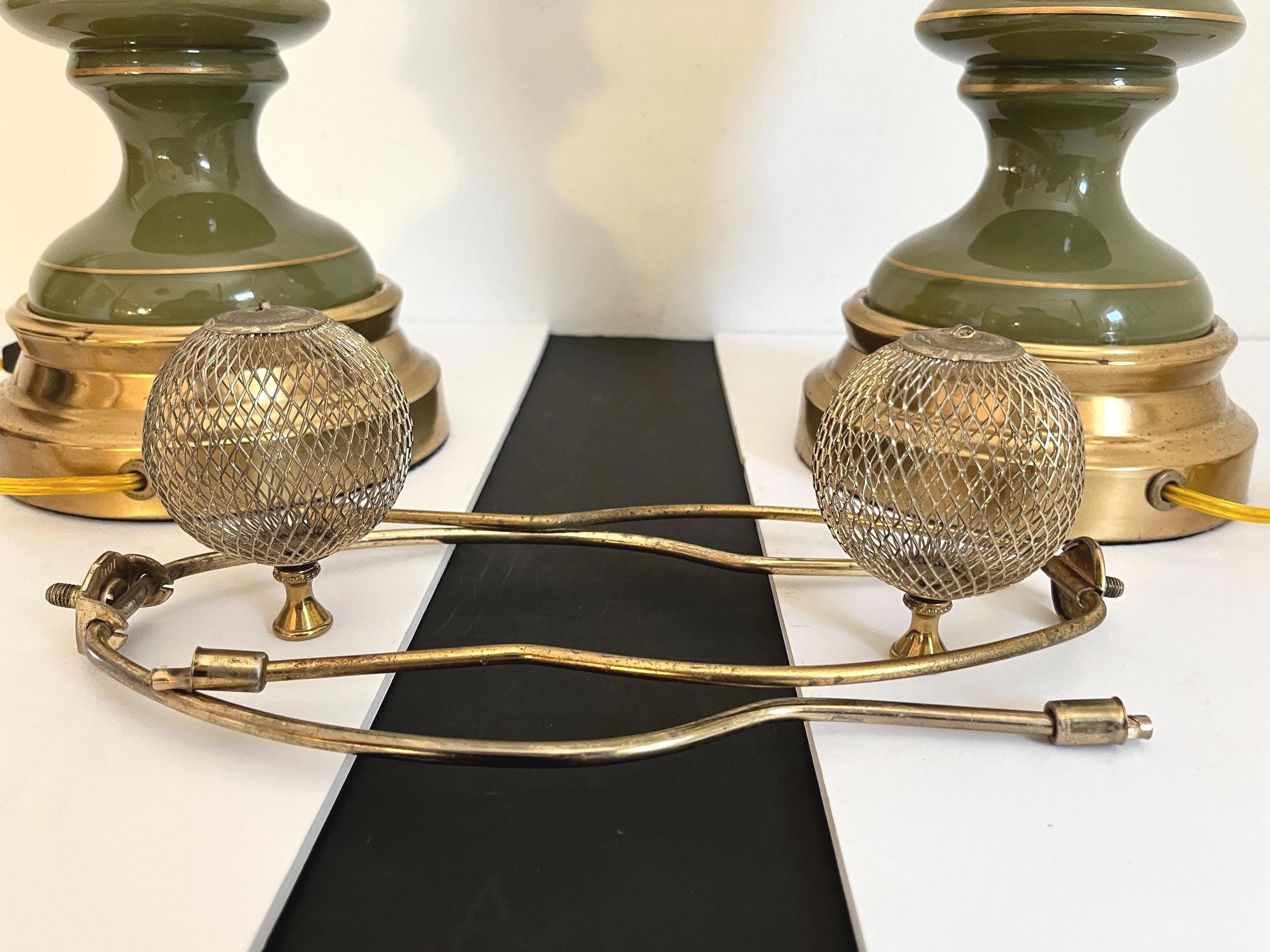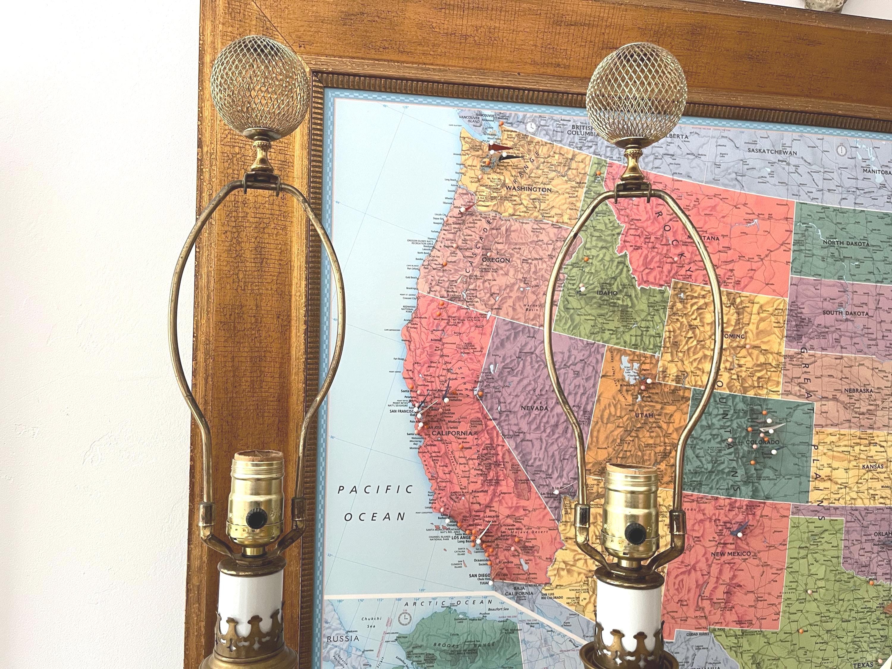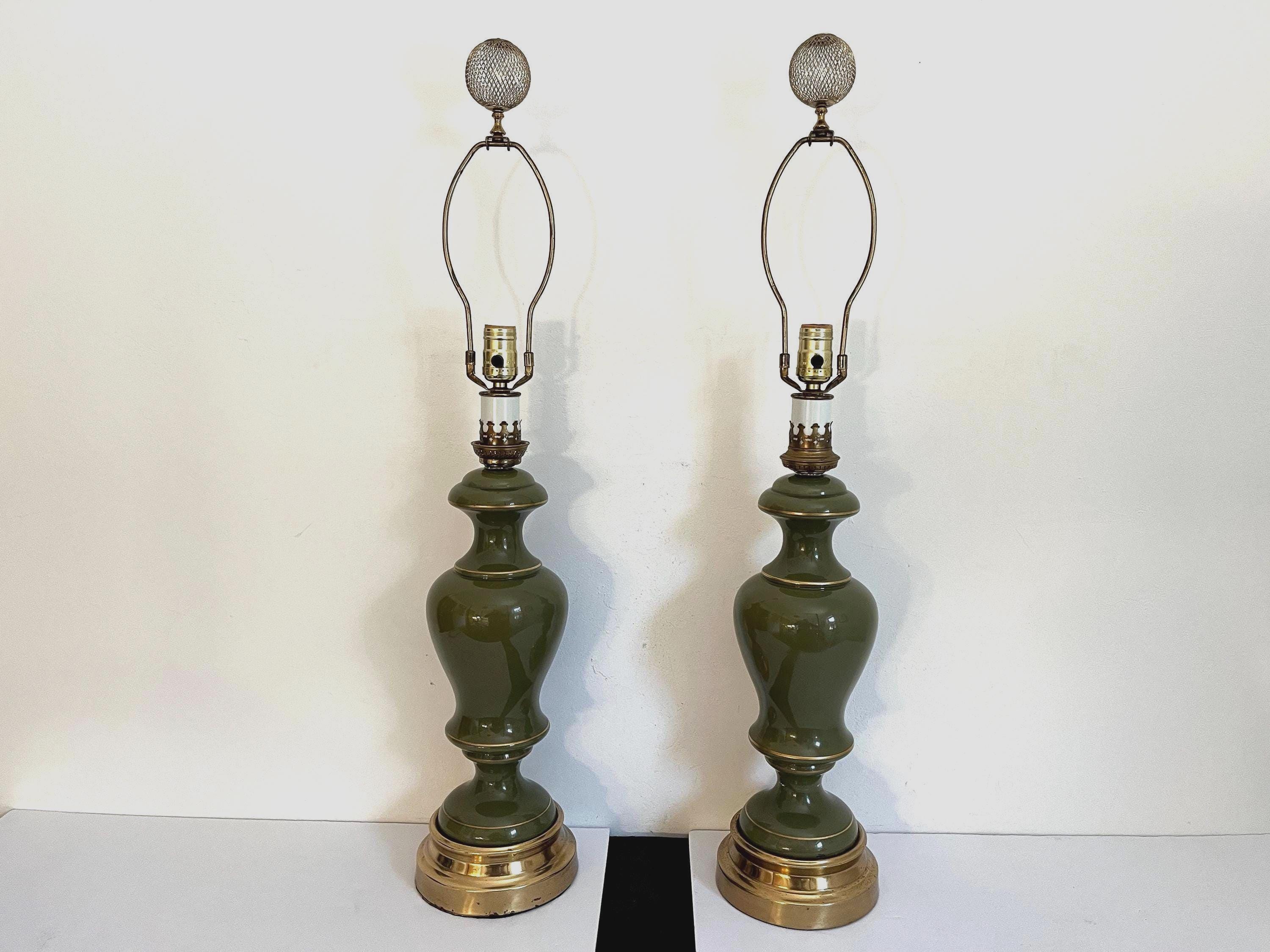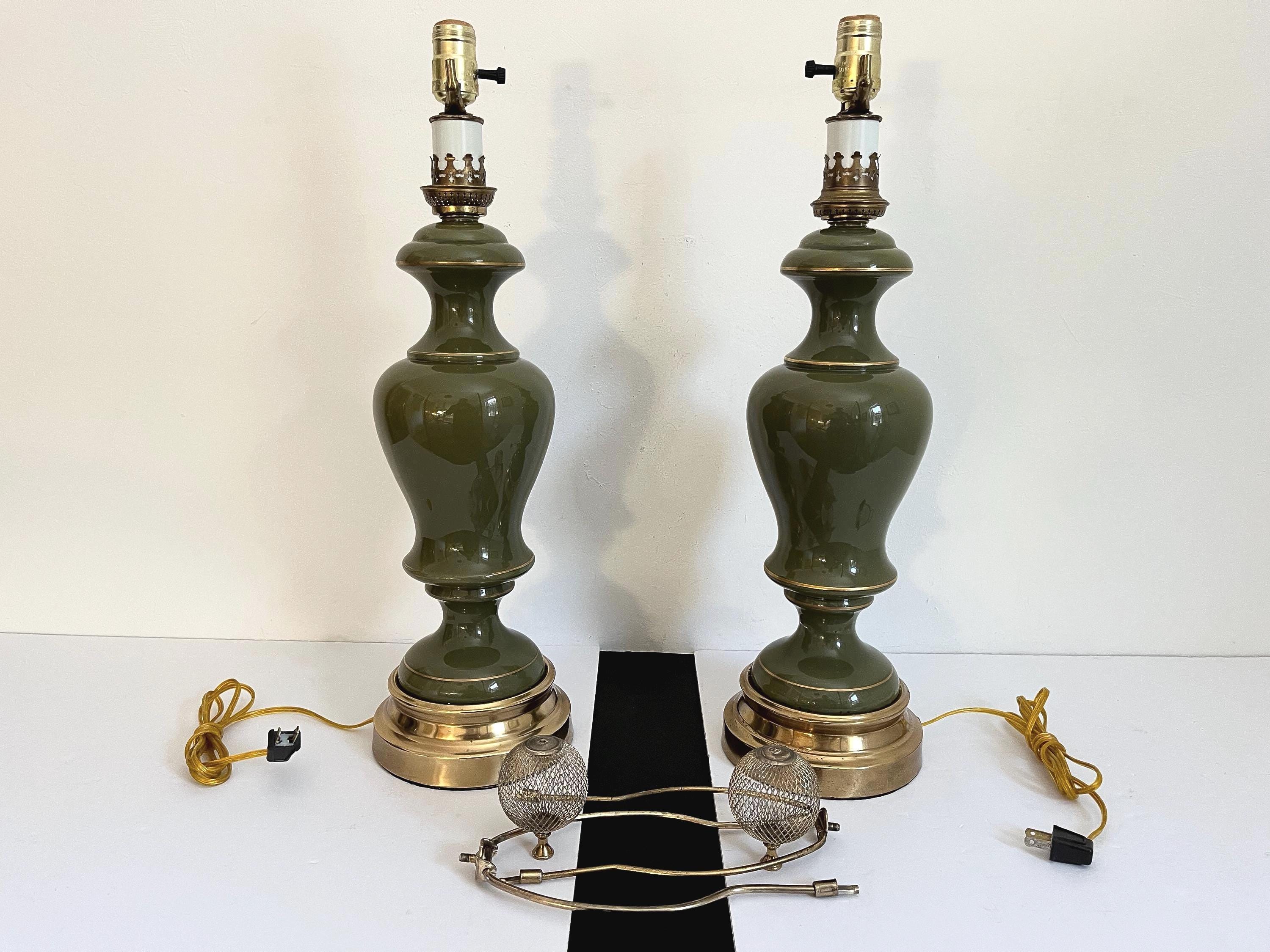 Professionally restored with new wiring, three-way sockets, cords, and plugs. Hold standard bulbs. Shade shown for reference, not included.