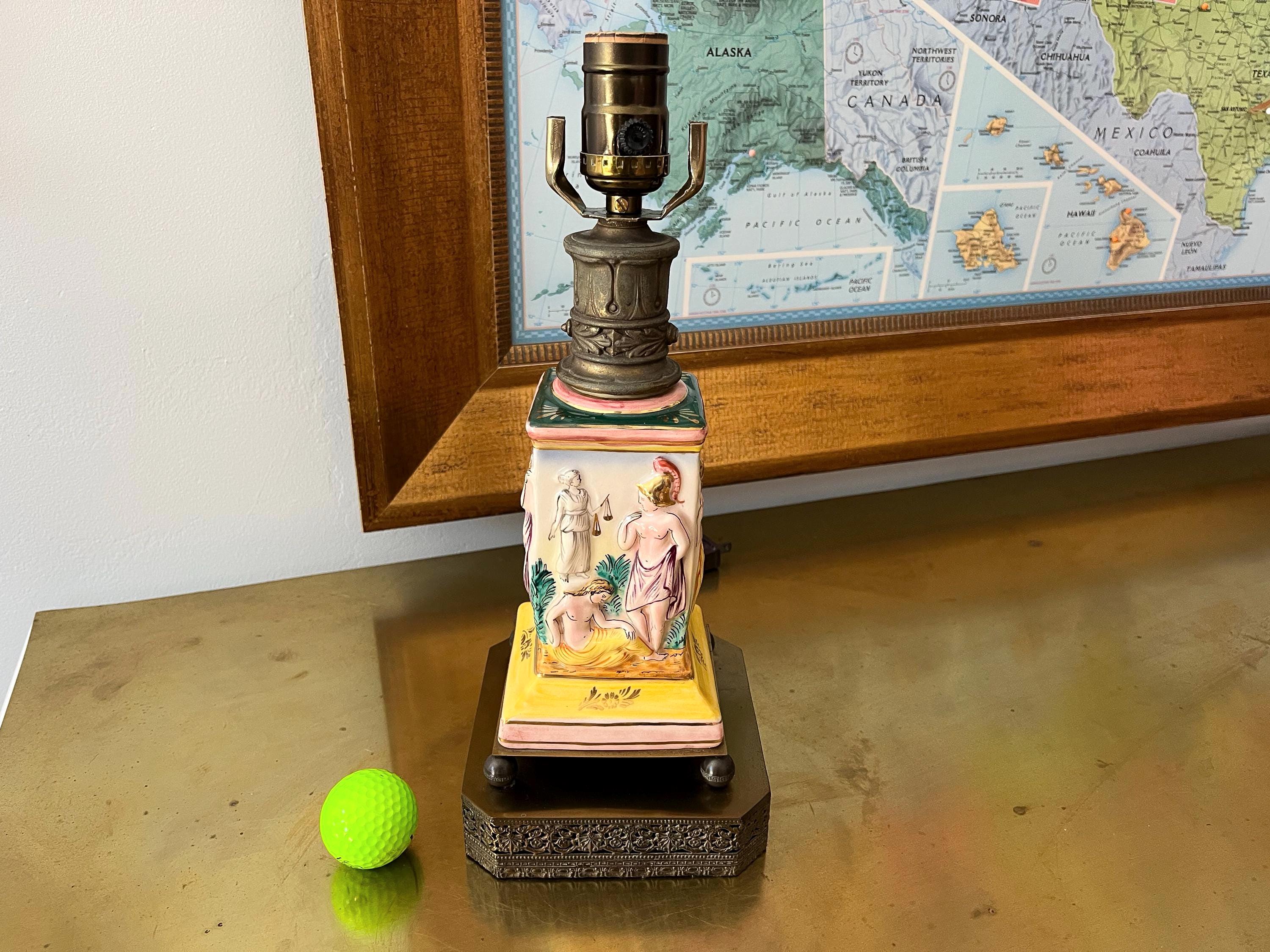 In great VINTAGE condition with patina on metal bases, one missing metal key; one lamp is slightly taller than the other.