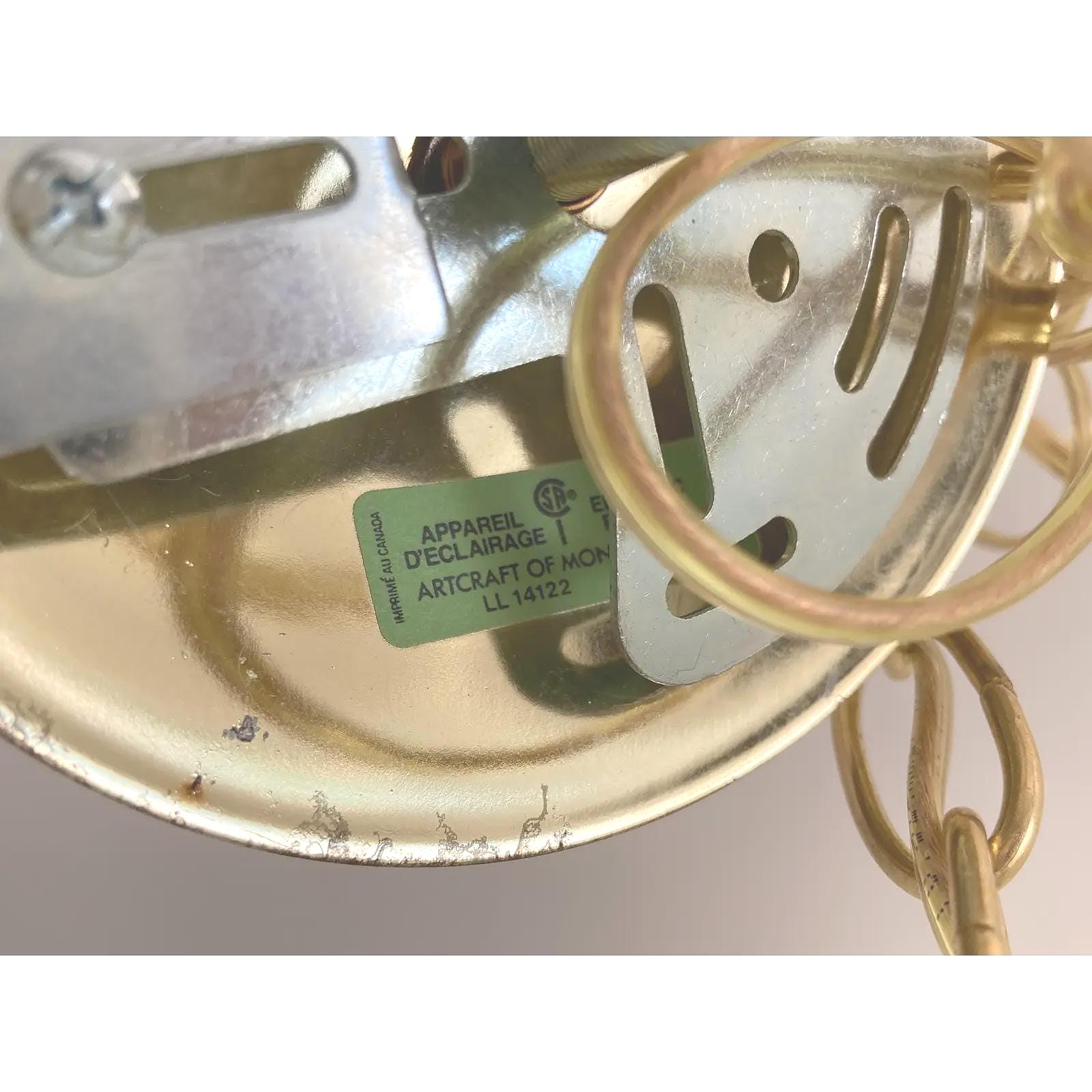 Professionally restored with new wiring and porcelain socket for standard bulb. Comes ready to install with original gold metal ceiling canopy and adjustable 36"L chain.