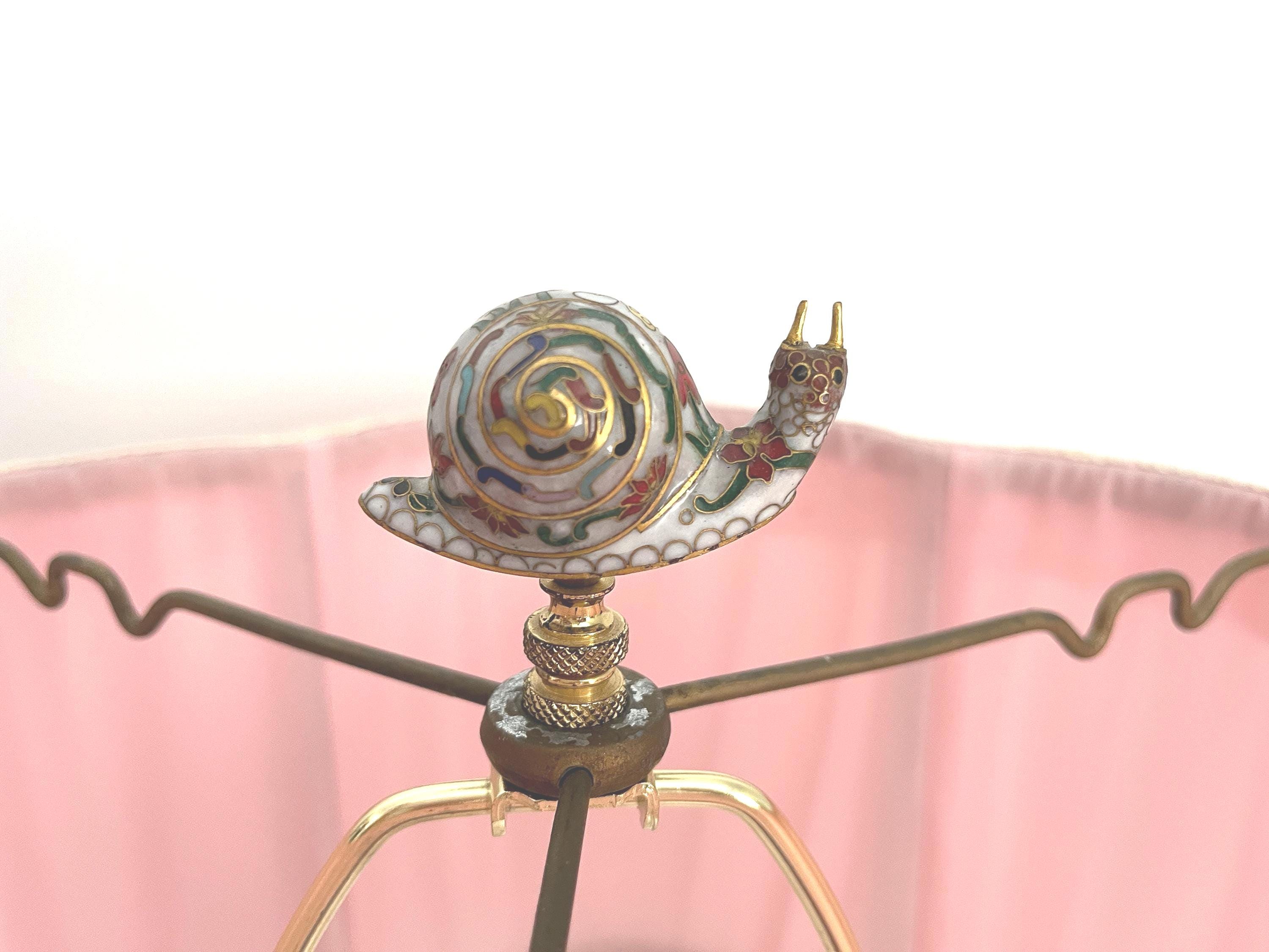 Professionally restored with new wiring, brass fittings, cord, and socket for standard bulb. Vintage pink ruffled quatrefoil shade is included and optional. Harp and cloisonne' finial included.