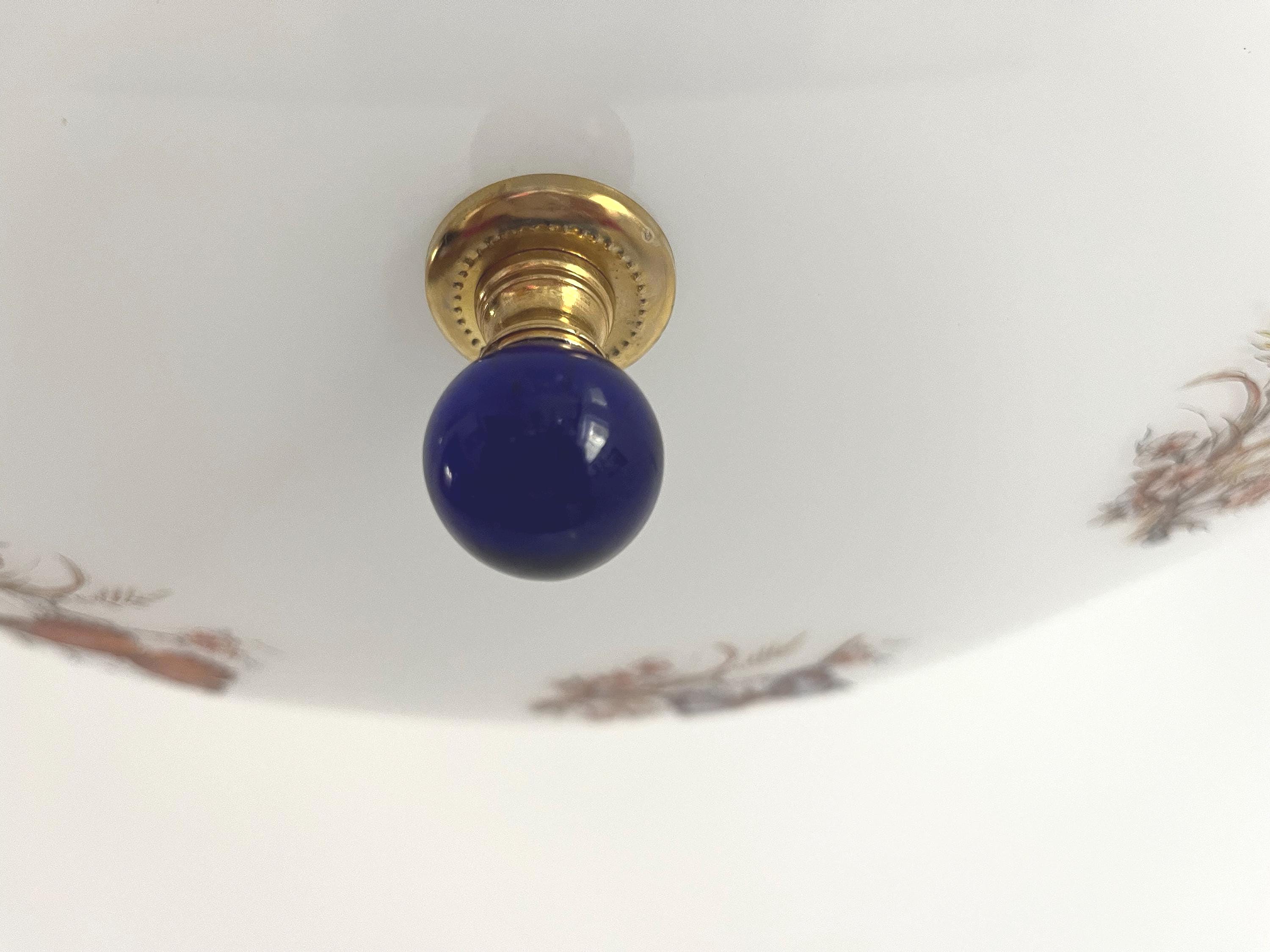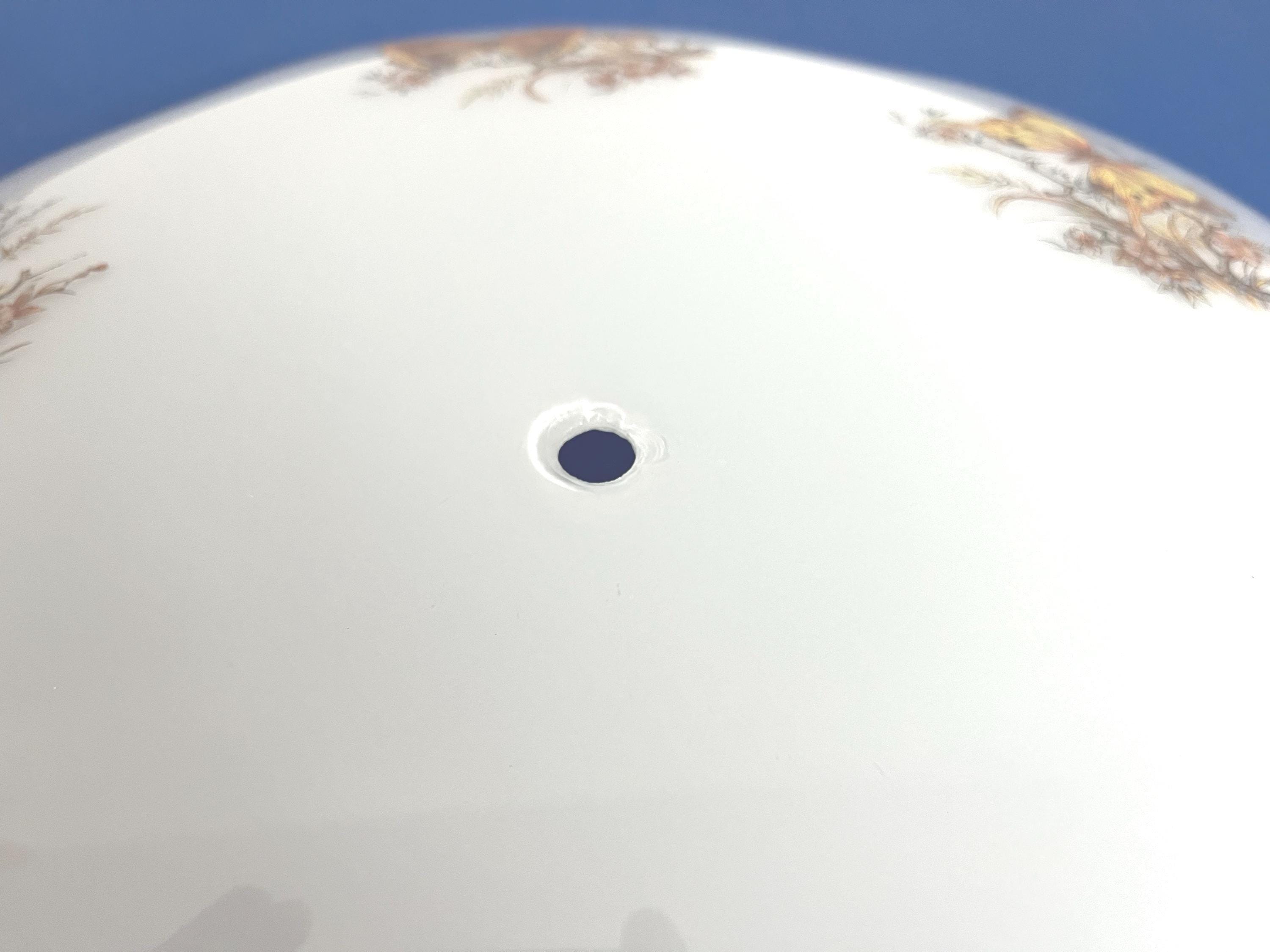 In great VINTAGE condition with light patina, edge chip, chips at mounting hole.