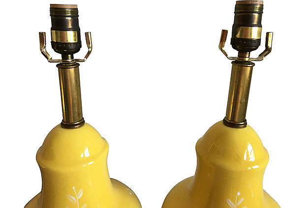 This classic pair of lamps retains the Cooper foil labels and the original Asian-style wood bases with brass ring accents. In excellent vintage condition and ready to add sunny style to any space.